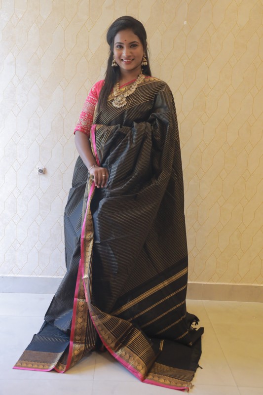 • Colour: Maroon body with Pink zari border
