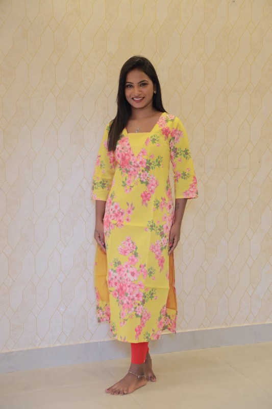 Yellow Floral Printed Kurthi – Soft & Elegant Daily Wear