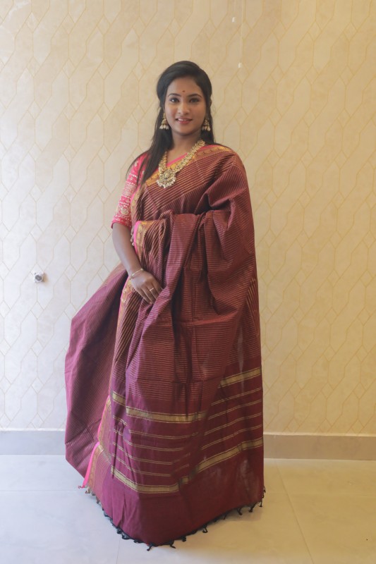 • Colour: Maroon body with Pink zari border